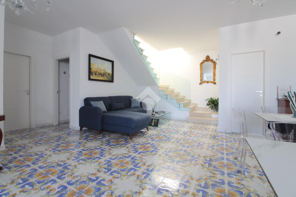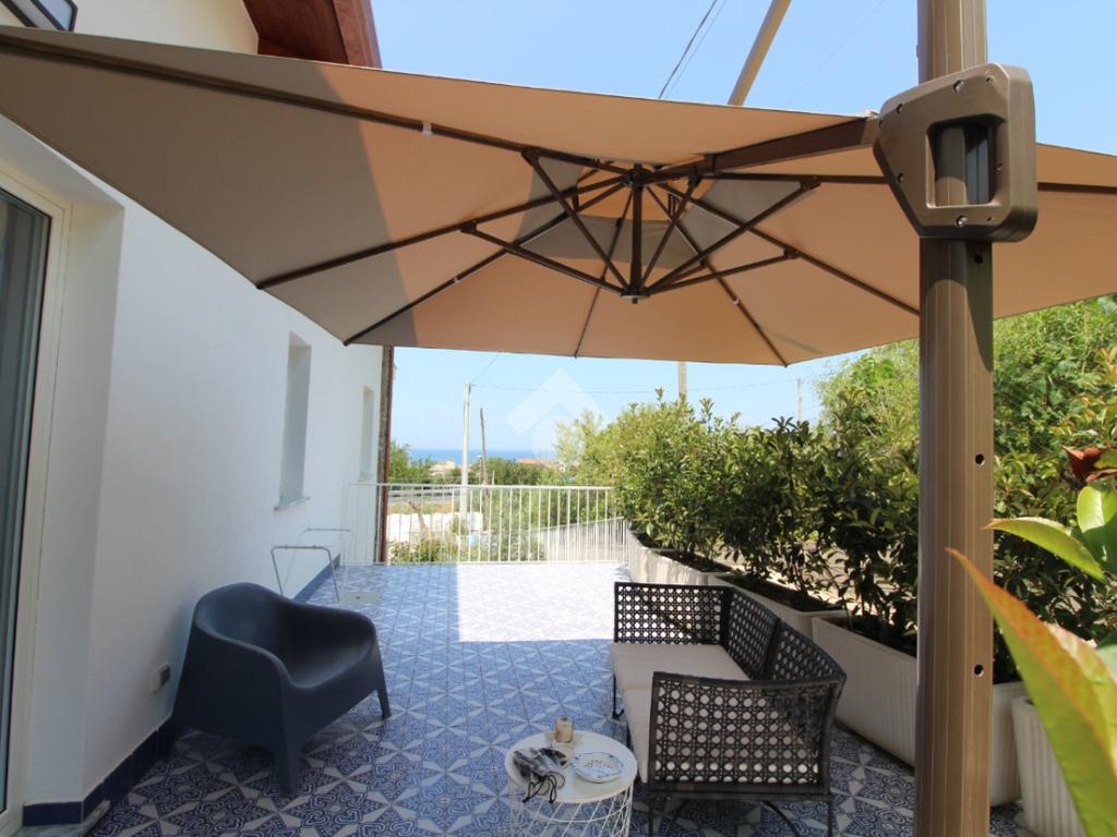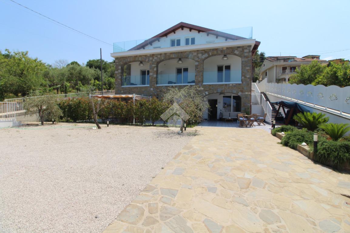 In Via Togliatti, villa indipendente di nuova costruzione, situata in una posizione strategica a soli 600 metri dalle spiagge del Lungomare. L’immobile gode di una meravigliosa vista mare ed è circondato da un ampio spazio esterno di circa 750 mq, suddiviso tra area pavimentata, giardino e zona adibita a posti auto. La villa si sviluppa su tre livelli, per una superficie interna complessiva di circa 400 mq, ed è progettata per offrire il massimo del comfort e della funzionalità, sia come residenza per famiglie numerose che come investimento per locazioni turistiche o plurifamiliari. Al piano terra troviamo due appartamenti: il primo è un bilocale diviso in soggiorno con angolo cottura, una camera da letto e un bagno; il secondo è un appartamento più ampio, con soggiorno, cucina abitabile, bagno, cantina e una camera utilizzabile come studio. Da quest’ultimo, una scala interna conduce al primo piano, dove si sviluppa la zona notte principale. Il primo piano ospita tre camere da letto, ognuna con bagno privato. Due delle camere dispongono di ampi balconi coperti con vista mare, mentre la terza è dotata di un terrazzo di circa 20 mq. Sullo stesso livello è presente anche una porzione attualmente allo stato grezzo, che verrà rifinita in un ulteriore appartamento con soggiorno con angolo cottura, una camera da letto e un bagno. Il secondo e ultimo piano mansardato è anch’esso allo stato grezzo, ma verrà completato realizzando due appartamenti distinti, ciascuno composto da soggiorno con angolo cottura, una camera da letto, un bagno e un terrazzo con vista mare. La villa si distingue per le sue rifiniture moderne e di pregio, tra cui pavimenti in ceramica vietrese, doppi infissi e impianto di climatizzazione in tutti gli ambienti. L’intera struttura è pronta per essere abitata e offre una soluzione abitativa versatile, perfetta per più nuclei familiari che desiderano vivere vicini mantenendo la propria indipendenza. Grazie alla vicinanza al mare e alla struttura già predisposta per più unità abitative, rappresenta anche un’ottima opportunità di investimento, con la possibilità di ottenere rendita da locazioni turistiche o stagionali.